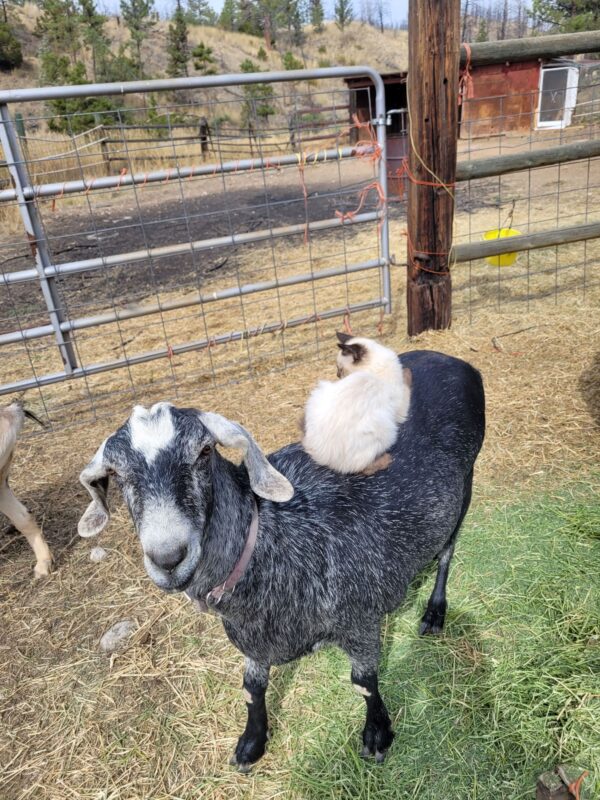 Bailey was our beloved puppy goat. While her sisters were running around playing, you could find her with her people. She loved to lay down next to Gramma so she could be brushed and fed cookies. She loved walks, fresh grass and all her animal friends. Barn cats would cuddle up with her and the chickens would ride around on her back. Her sister goats miss her terribly and so do her people, cats, chickens and her Shelly, her dog friend. Her only vice was getting on Gramma’s roof to jump around which made us all laugh, until it was time to get her down! We will miss her sweetness and kindness to her humans, random children that wanted to hug her and all her animal friends.